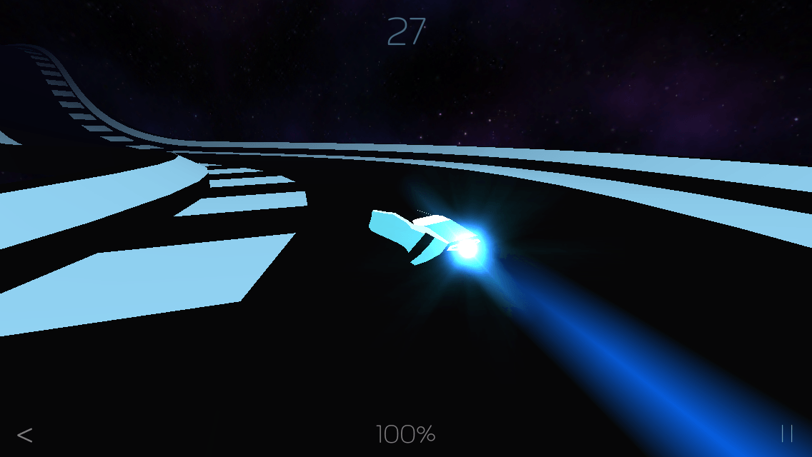 High speed hovercraft racing in space. Guide your hovercraft around turns and jumps at ever increasing speeds.
